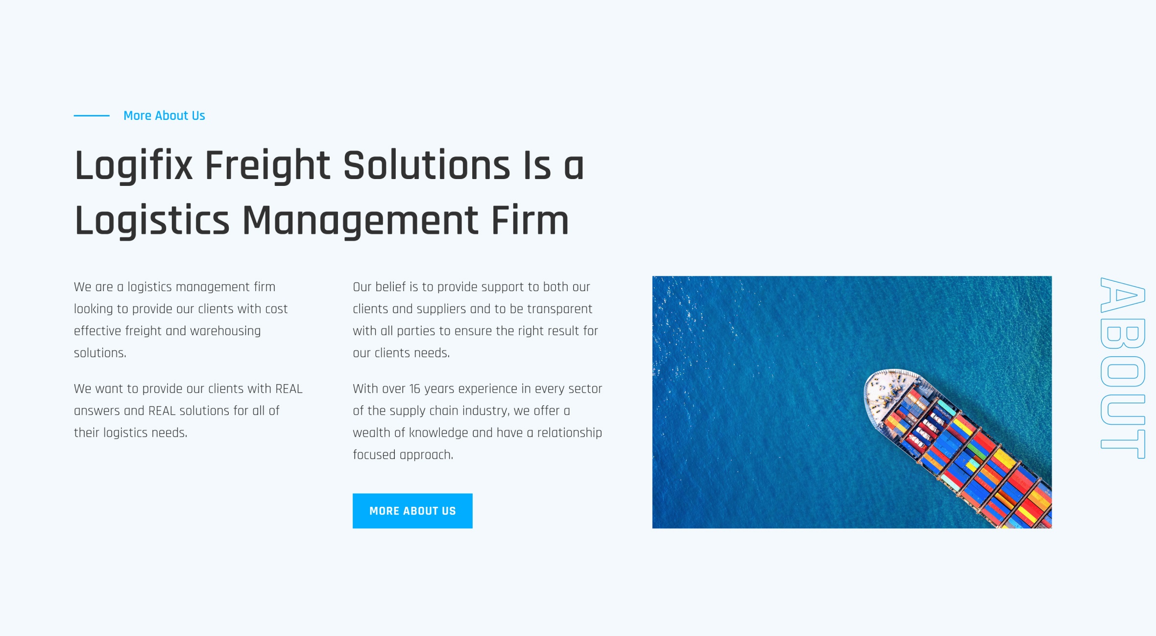 Logifix Freight Solutions is a logistics management firm looking to provide clients with cost effective freight and warehousing solutions. Web design is structured, minimalist and conveys the main purpose of the company. We were able to improve the efficiency of the site and solved the problems of the company